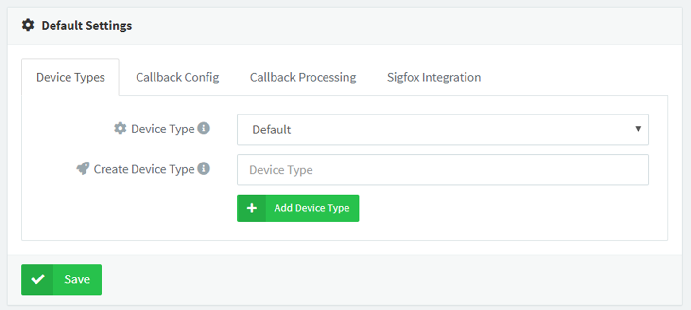 Every Sigfox "Device Type" that is integrated over this plugin, should define a new profile in Thinger.io plugin, with the same identifier as defined in Sigfox Platform. Note that each Sigfox Device Type defined in this way will allow to customize the plugin behaviour for that kind of devices.
