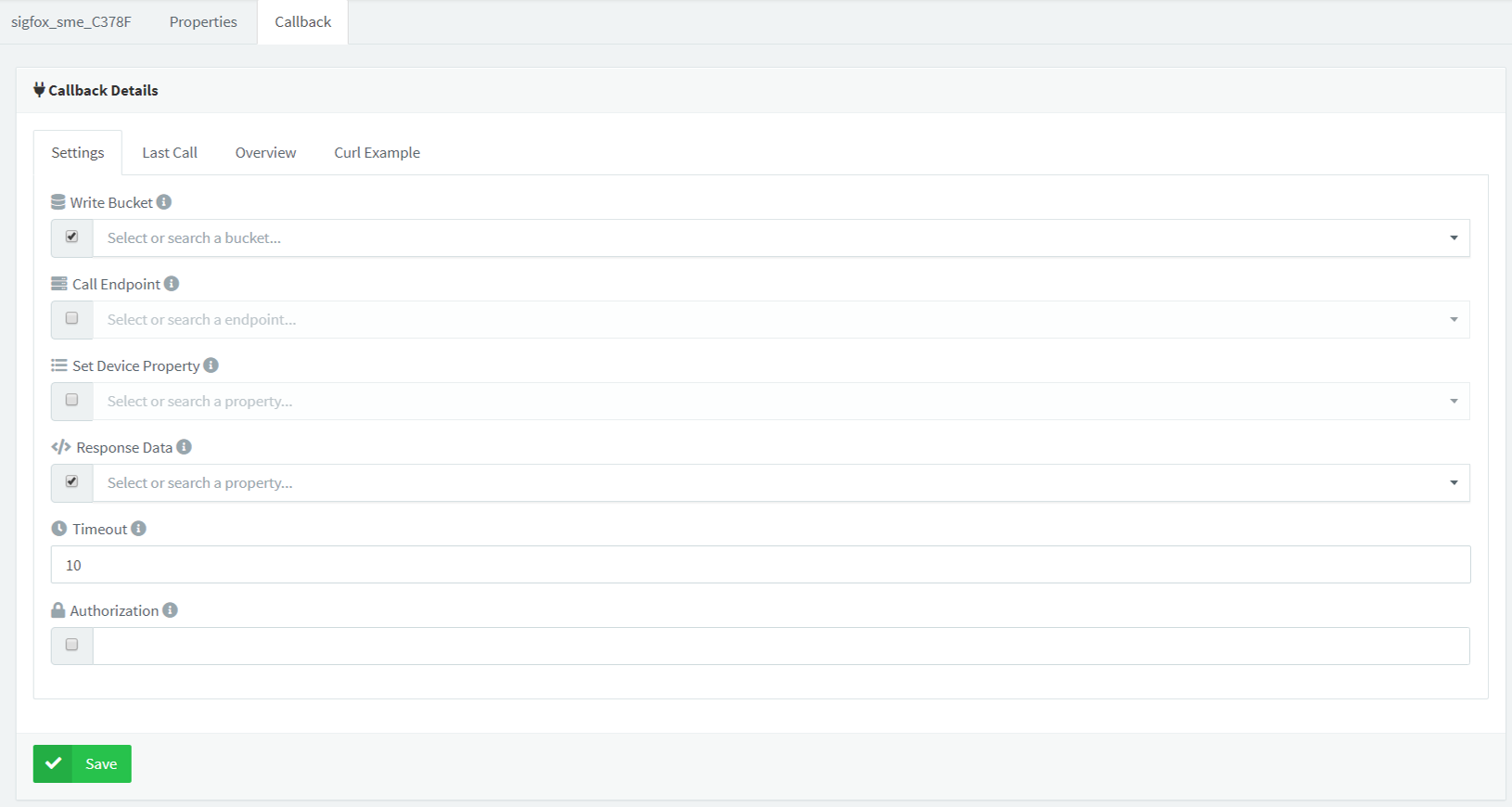 This callback configuration allows to retrieve additional information, such as geolocation, and infrastructure metadata like the computed over the different base stations which received the messages. However, working with this callback requires a delay of approximately 30s.