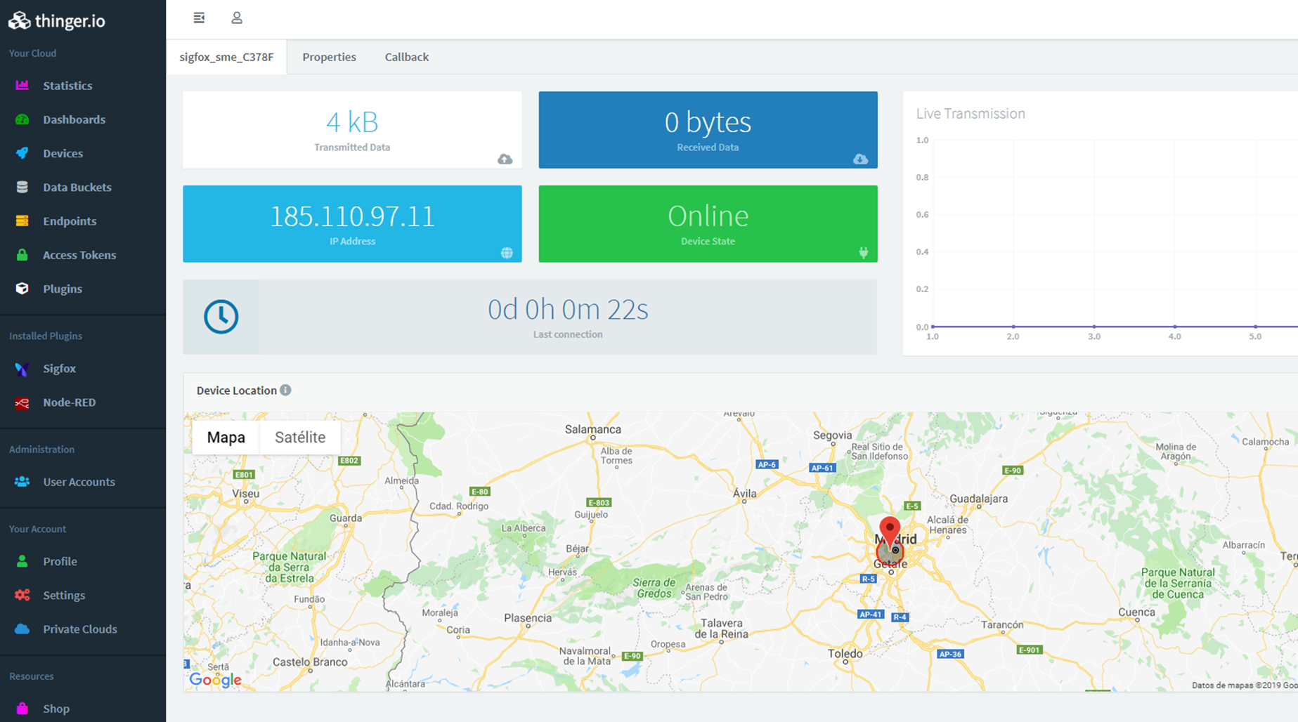 Learn how to configure Sigfox Callback to send data to Thinger.io platform here