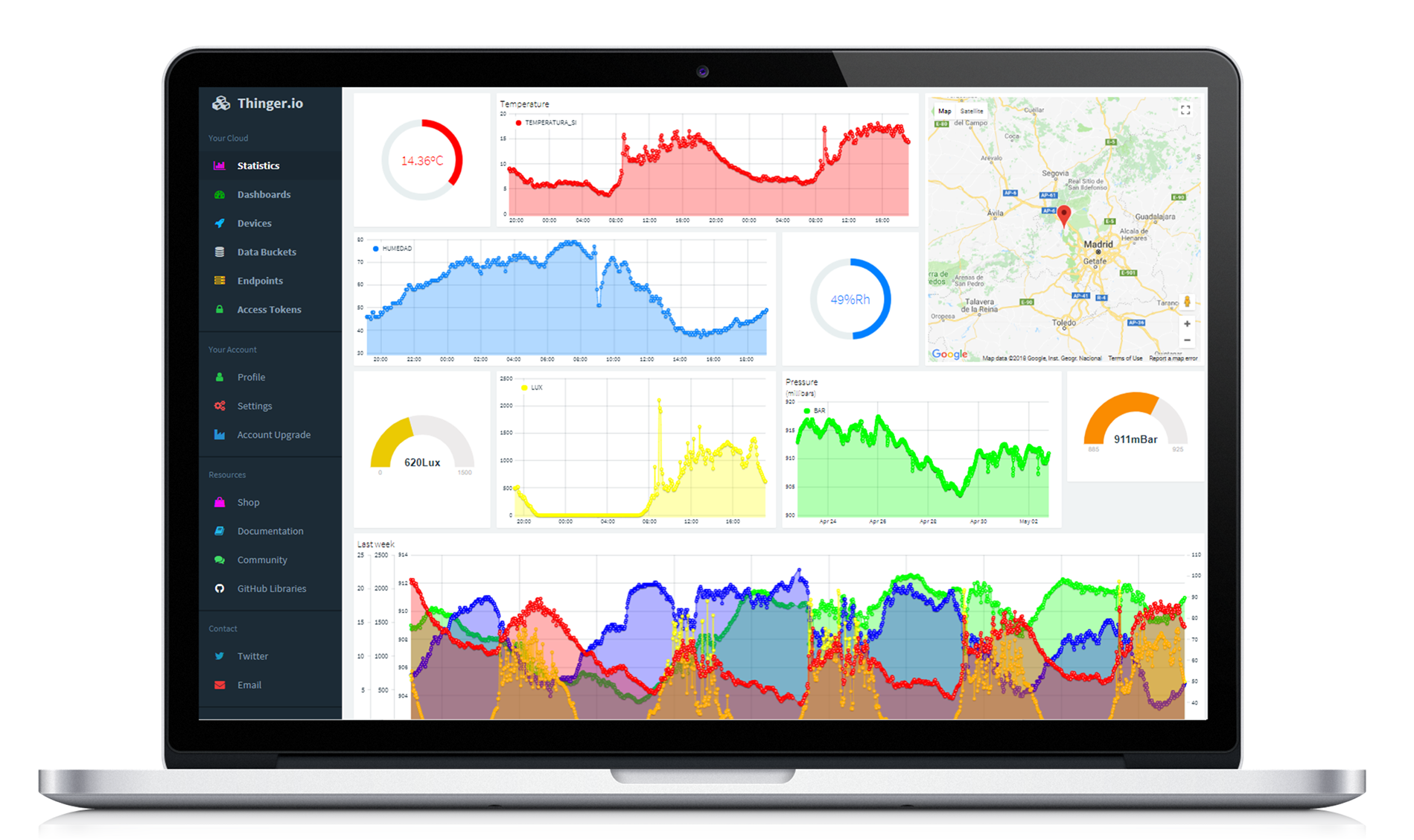 at thinger.io we continue to work to extend the platform's integration capabilities with technologies that can help create more advanced IoT projects in the easiest way. We have other plugins such as NodeRED that allow working with IoT data in almost unlimited ways, such as creating alerts on the data, geofencing, reporting, etc.