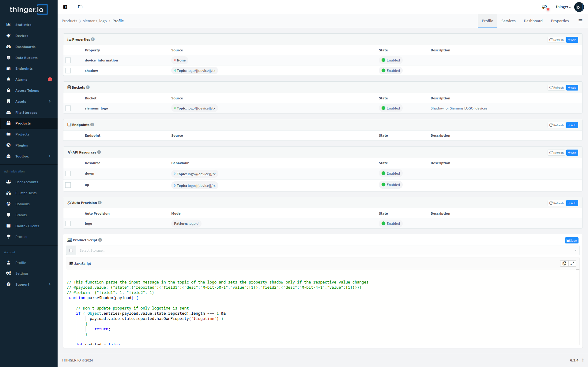 - Basic product functions to parse the shadow of the device and handling sending commands to the Siemens LOGO! controller.