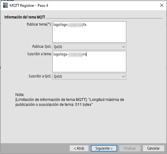 In the next dialog screen we will configure the MQTT topics in which the Siemens LOGO! publishes and is subscribed.